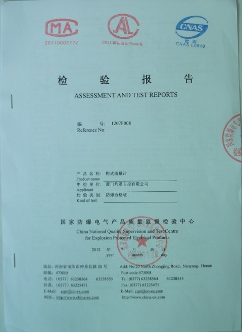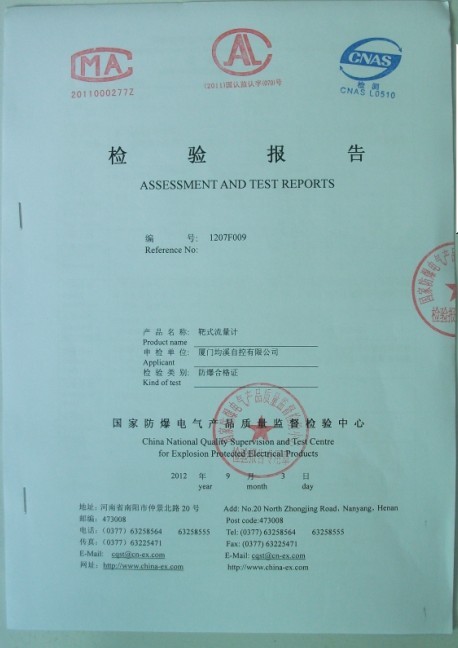 靶式流量計隔爆型檢驗報告